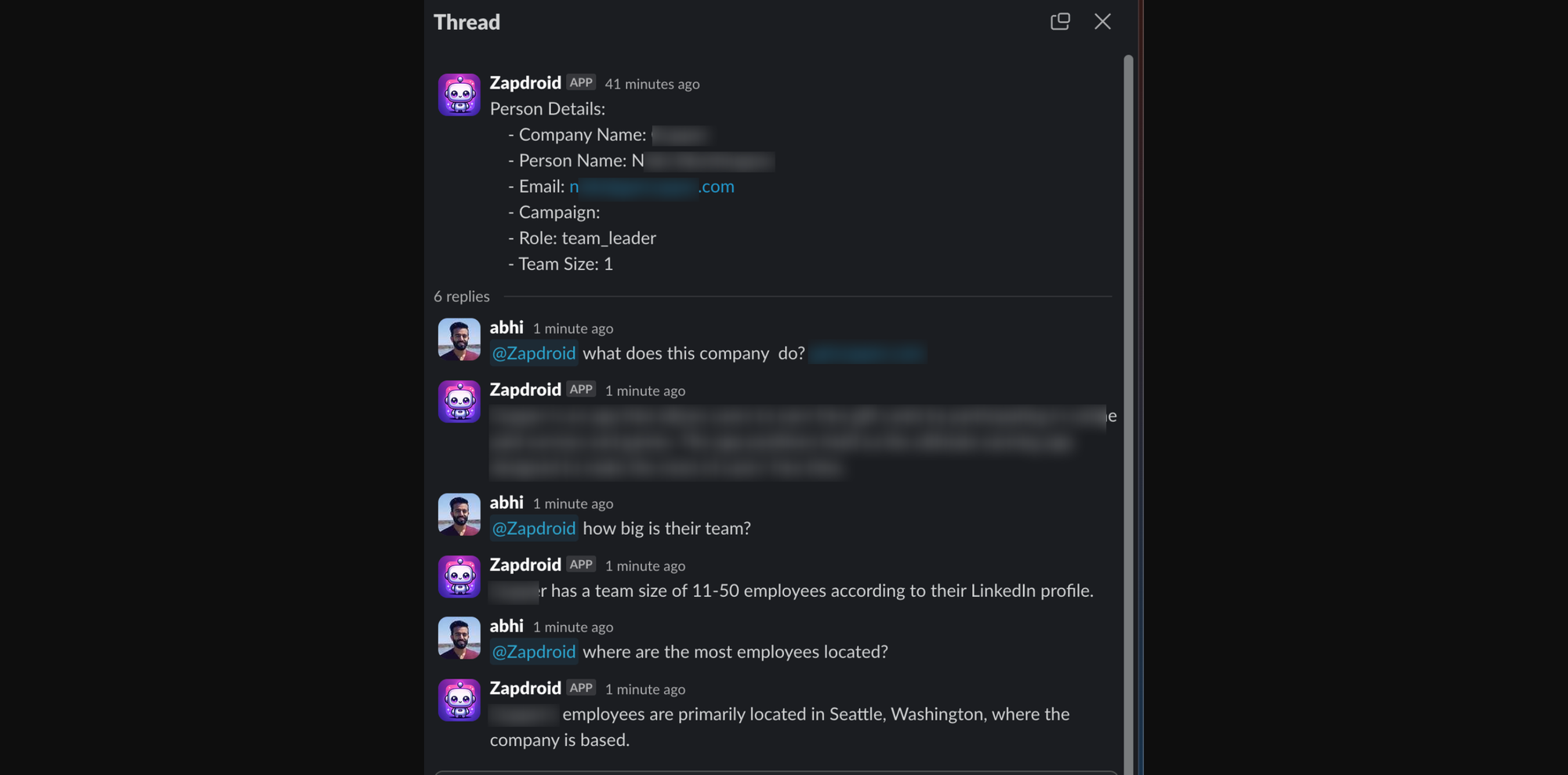 Consider Zapdroid, which allows you to build bots that not only qualify leads but also enrich them with external insights instantly. Suppose someone mentions that they work in cybersecurity. Zapdroid can leverage that information, fetch additional company data, and seamlessly incorporate it into the lead’s profile—making every future interaction more relevant.